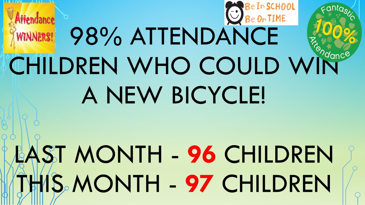 Children that maintain this standard of attendance will be entered in our prize draw at the end of the year and could win a bicycle!