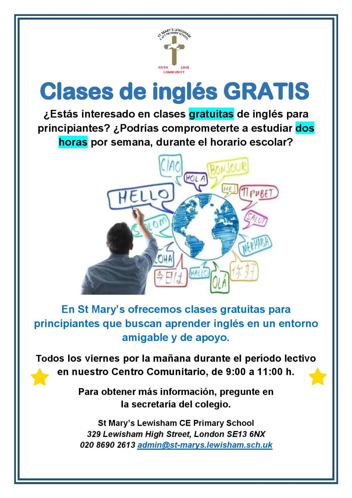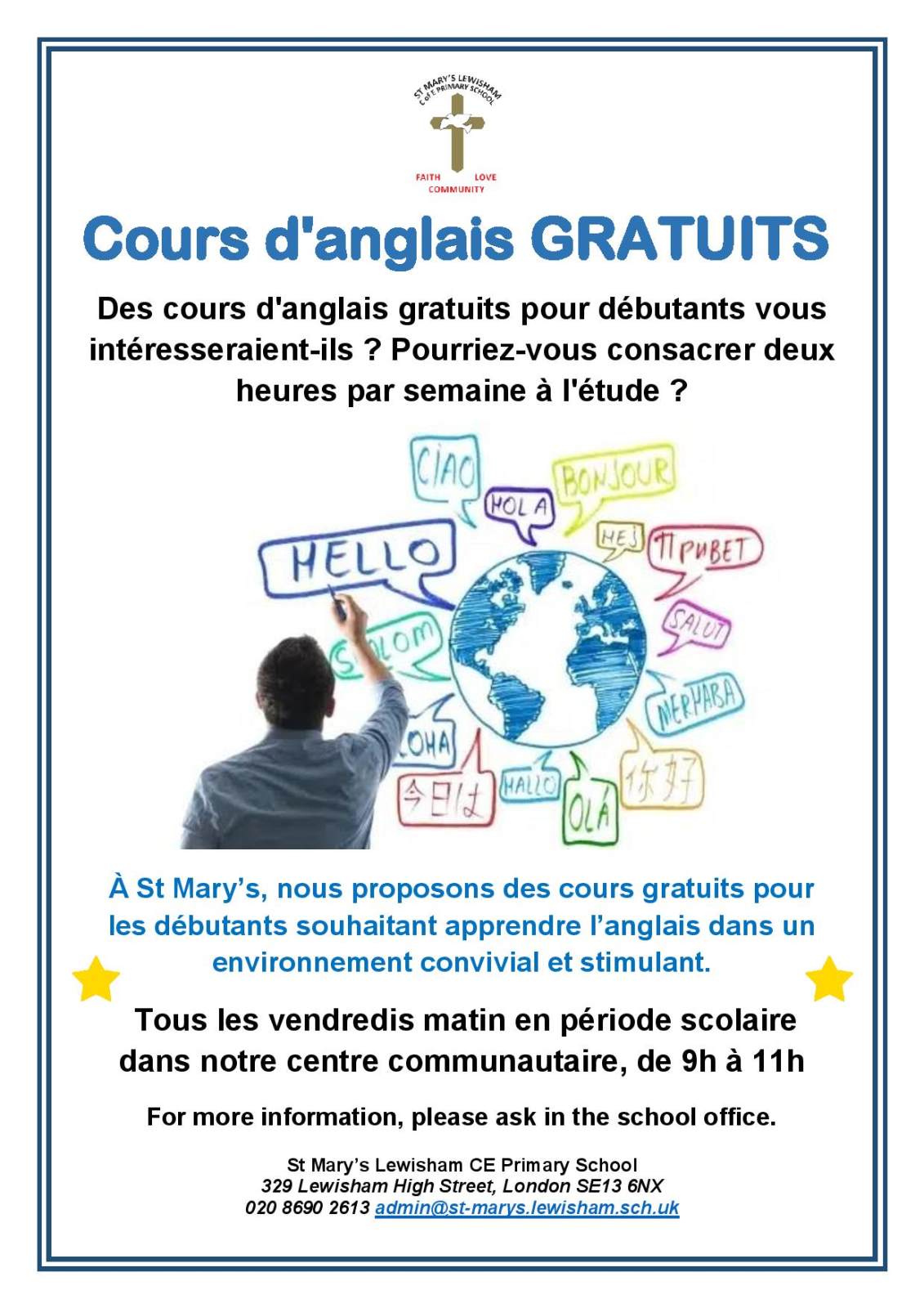 We have obtained funding to deliver FREE English classes on Friday mornings during term time. Classes are delivered by a qualified instructor and are open to anyone who needs support to improve their English - this includes parents and carers as well as members of the local community.