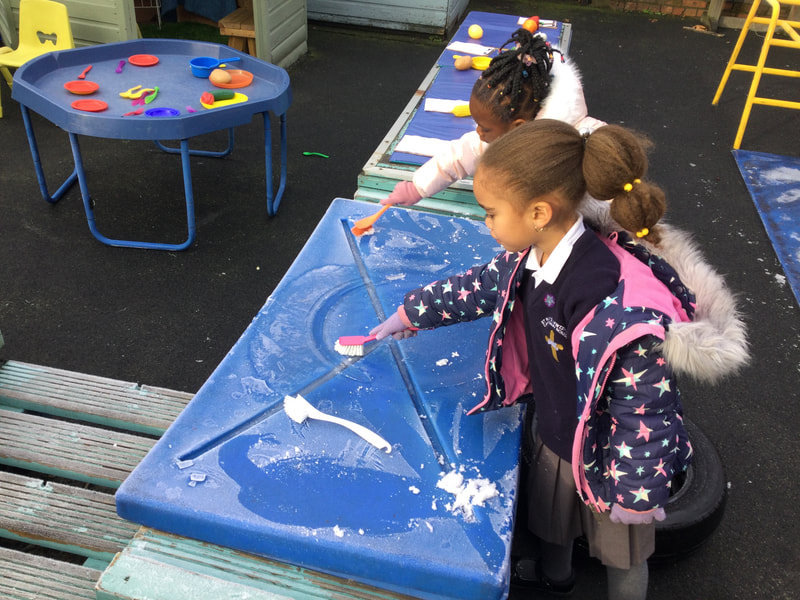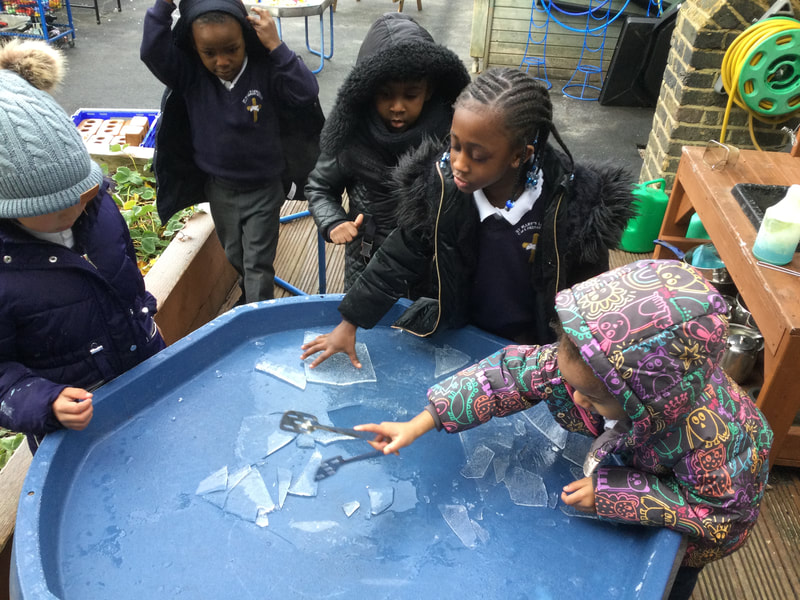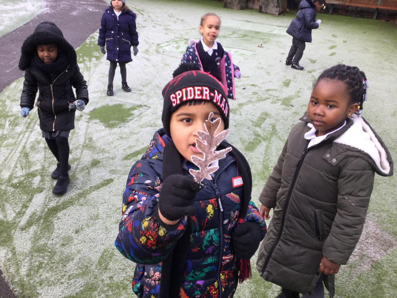 The ice did not stop us from having fun in Reception. We got on our coats, hats and gloves and ventured outside! We found lots of ice and made a baby snowman. We made marks in the frost and watched as the ice melted in our hands.