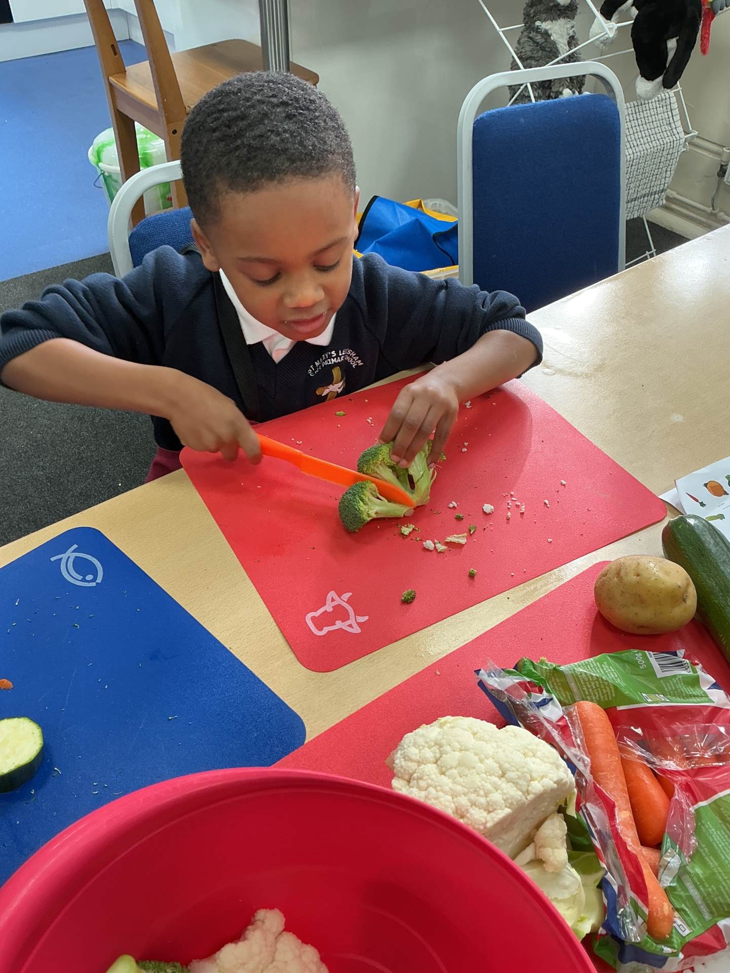 Inspired by Supertato, Reception class have been learning about different vegetables and recipes. After writing shopping lists and recipes, they learned how to use tools and equipment safely to prepare a delicious vegetable soup, which kept everyone warm on a cold and rainy day.