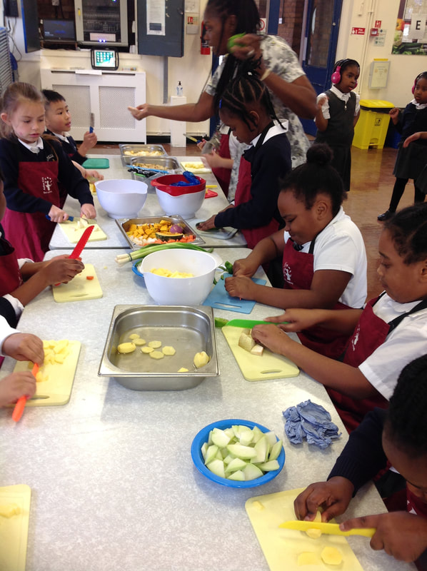 The children all enjoyed taking part in cooking activities as they learned recipes from around the world. In these pictures, Year 3 are enjoying preparing a delicious Caribbean vegetable soup!