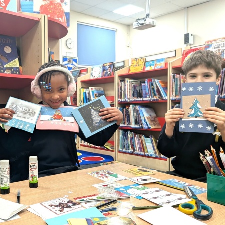 Our Eco Council loved making their own Christmas cards for friends and family - they recycled the pictures from old cards, then added their own personal messages.
