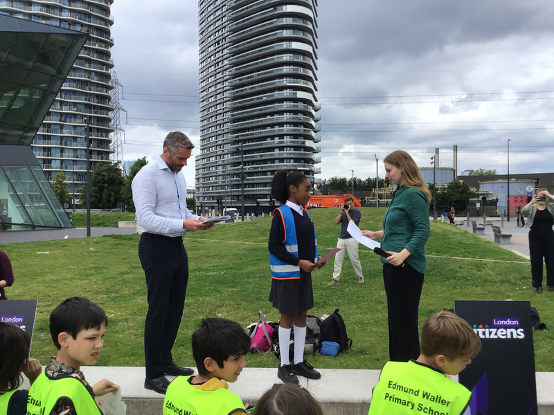 Our School Councillors and children from our Year 5 class who have been working with UCL students on our Housing Campaign travelled to City Hall in East London to join other schools and Citizens UK campaigners. We met with the Deputy Mayor for Housing - Tom Copley - and shared real stories and made demands for change, so that everyone has access to clean and safe housing.