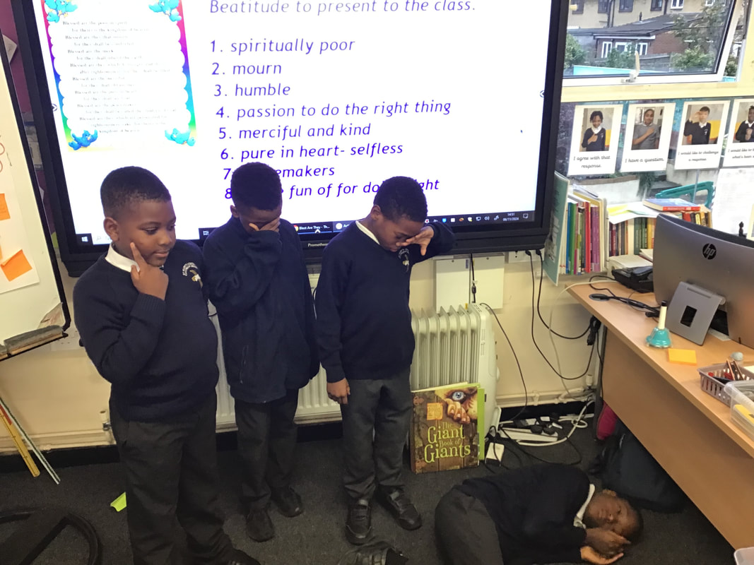 Year 5 have been learning about The Beatitudes and how Christians apply the principles and teachings in their daily life. We discussed the meaning behind each Beatitude and how it might look like in our daily interactions with our friends, family members and others in the wider community. Can you guess which Beatitude each frieze represents?