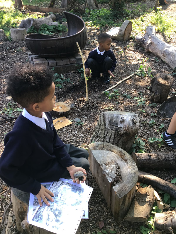 The children had a great time in the Forest School, gathering resources to build story settings and to make a home for Kevin (the flying pony) who is the main character in their class reading book.