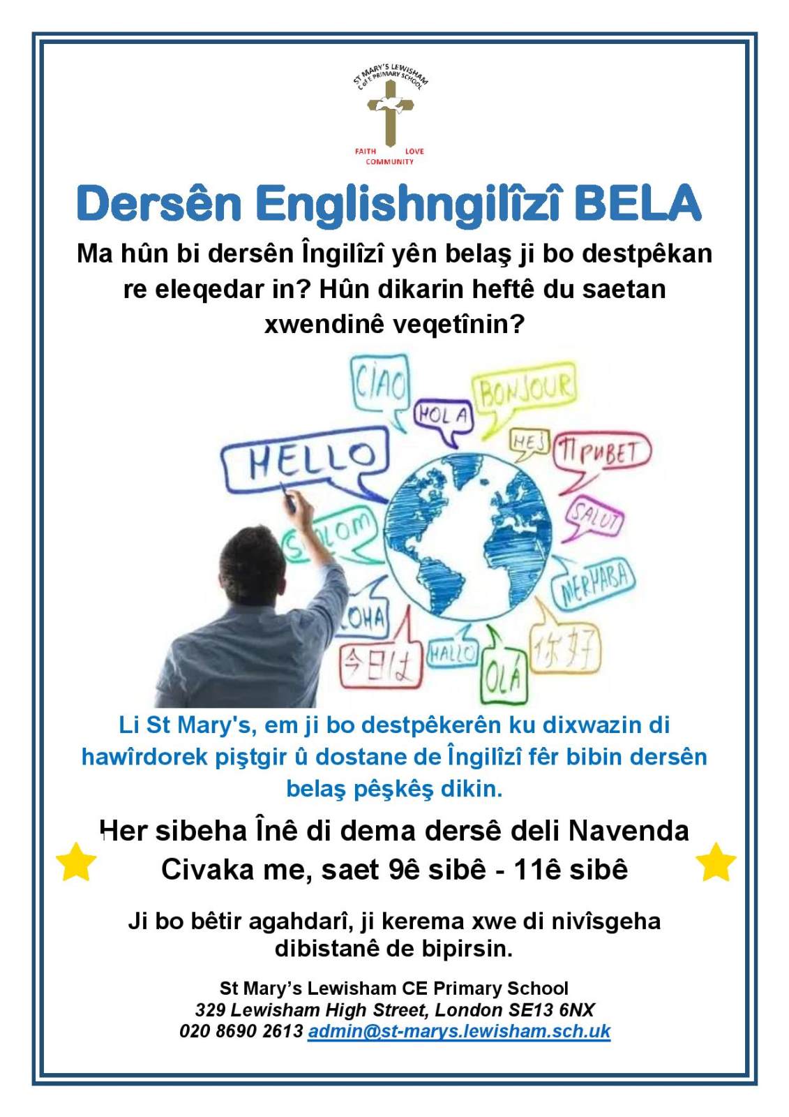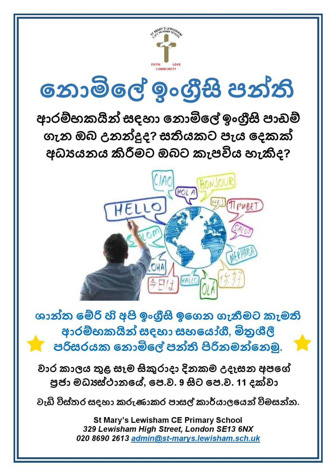 We have obtained funding to deliver FREE English classes on Friday mornings during term time. Classes are delivered by a qualified instructor and are open to anyone who needs support to improve their English - this includes parents and carers as well as members of the local community.
