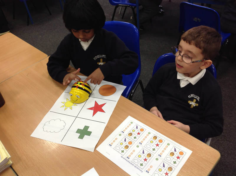 We have been learning early programming concepts, exploring individual commands and predicting the outcome of programs when using Bee-Bots. We thought about the commands needed to move the robot from one place to another on the mat, then we tested our algorithms and fixed any bugs that occurred.