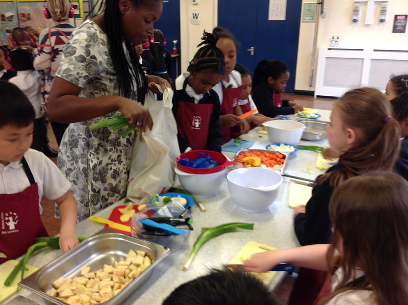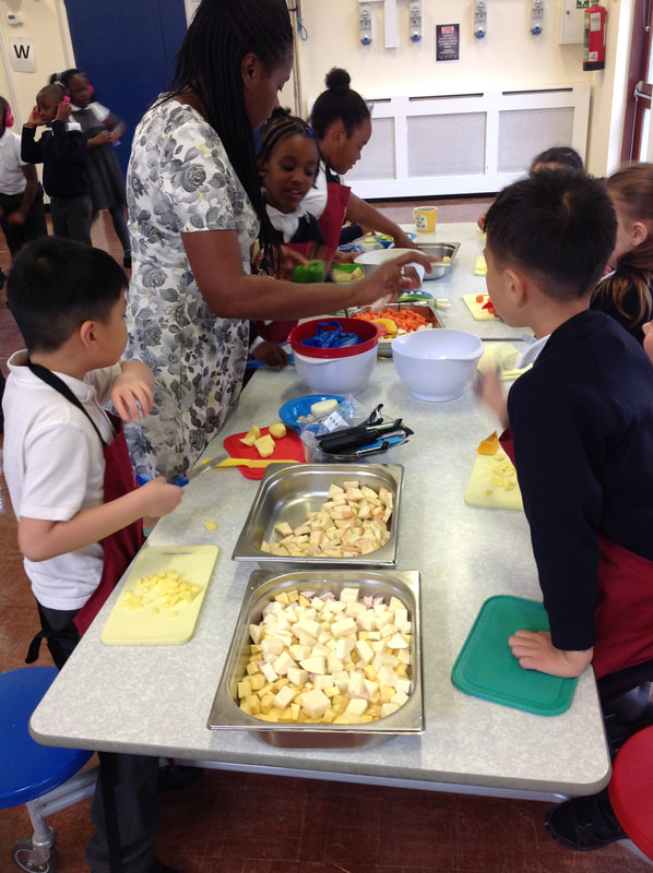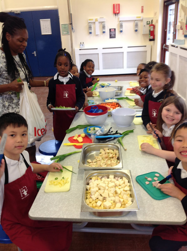 The children all enjoyed taking part in cooking activities as they learned recipes from around the world. In these pictures, Year 3 are enjoying preparing a delicious Caribbean vegetable soup!