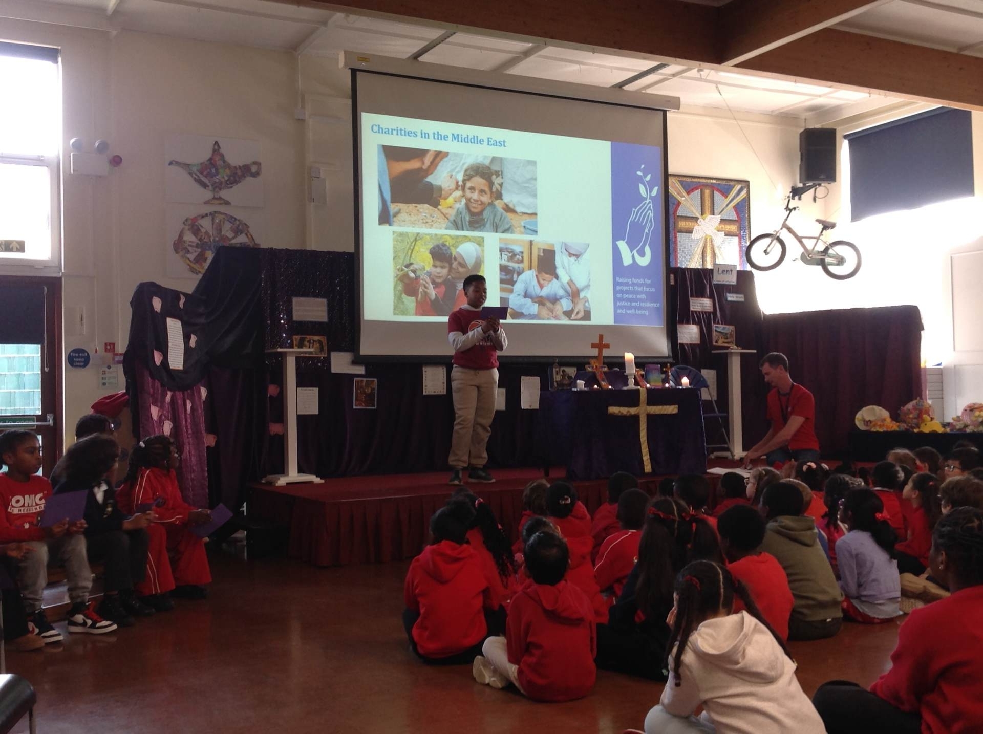 In order to publicise their fundraising for the Bishop's Lent Appeal, our Faith Group planned and led worship. They shared the charities that we would be fundraising for and explained to everyone about the Easter Fayre that they had organised.
