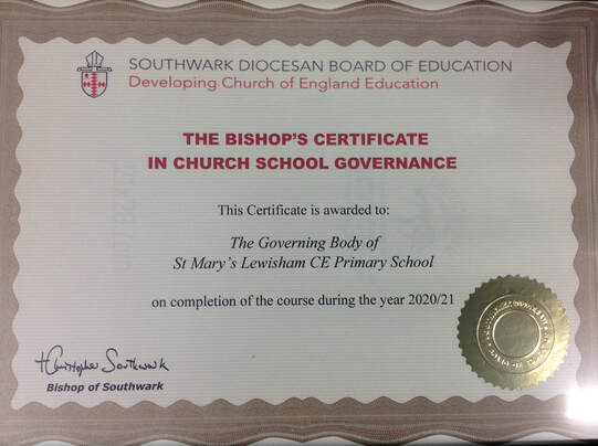 We are proud to have received this certificate in recognition of the work of our Governing Body and the regular training that Governors undertake to ensure they are up to date with key developments in Education and School Governance. The Governing Body are currently renewing the Bishop's Certificate in the 25/26 academic year.