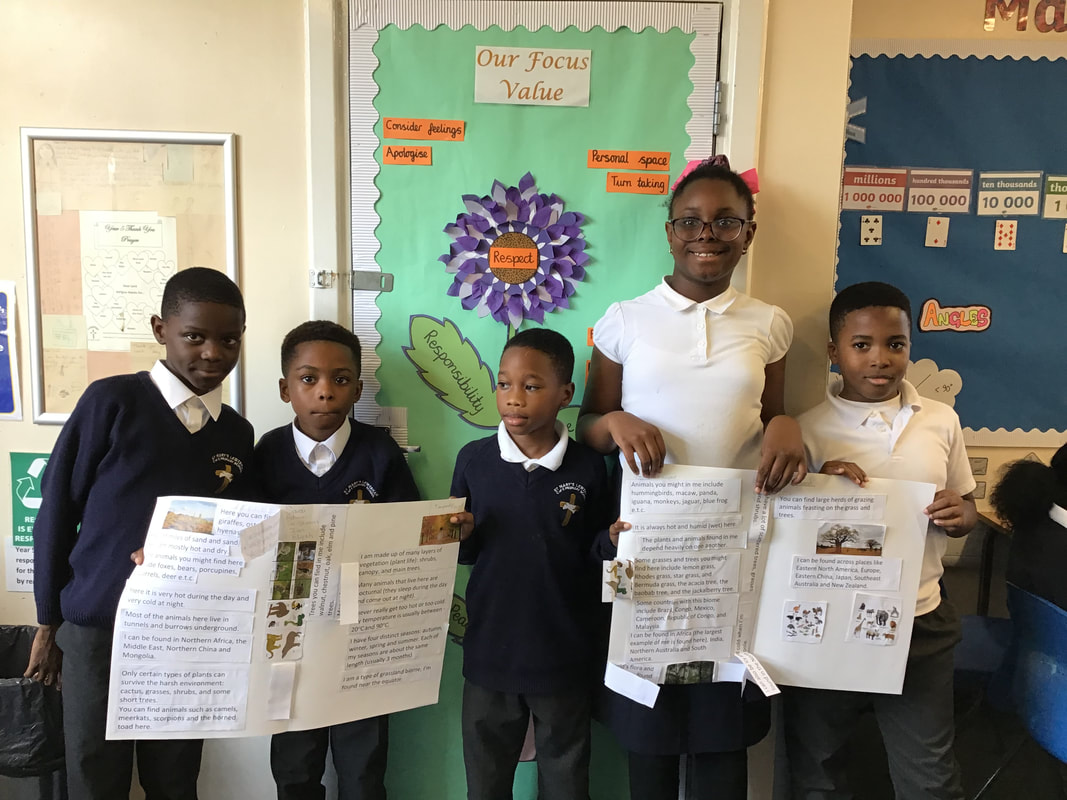 We have been learning about Biomes, their characteristics and the different fauna and flora that thrive in them. We worked in groups to sort sentence strips (which contained facts about the different biomes), animals and pictures into the right groups: Savannah, Temperate Rainforest, Tropical Rainforest and Desert.