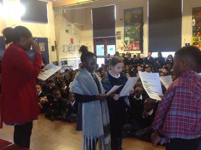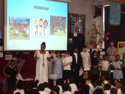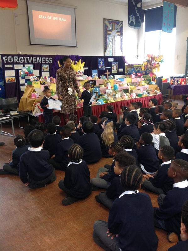 Mrs Graham, our Headteacher, leads us in worship every day. We join together as a school community to reflect in an atmosphere of Peace and Respect. Bible readings are used to help us to learn how we can live our school values. A combination of music, song, drama, artefacts and storytelling bring the worship to life for the children.